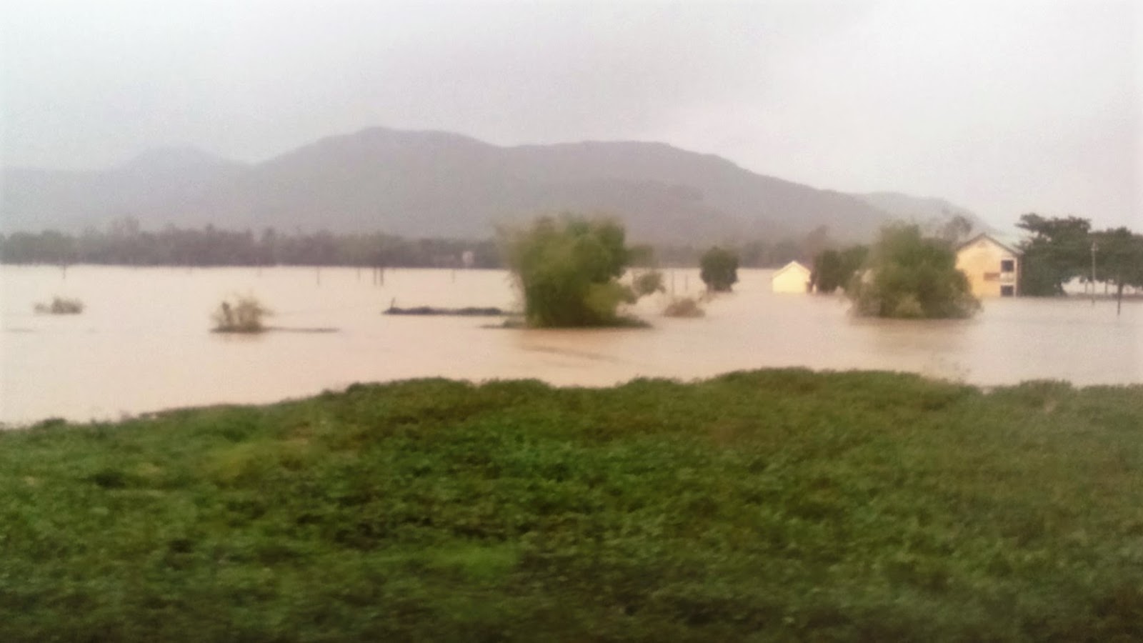 Ya, no mucho más tarde, paramos y no nos ponemos en marcha otra vez,, que raro.. en una hora más o menos aún estamos parados, pero no puedo preguntar porque no me entienden y el traductor nos lia más, has que viene un revisor espabilado, que ha traducido de su idioma en el traductor diciendo que hay corte de vías, que esta pasada noche un ciclón ha inundado toda la zona éste… que nos retrasamos unas 3h. Que se le va hacer, paciencia jejeje..